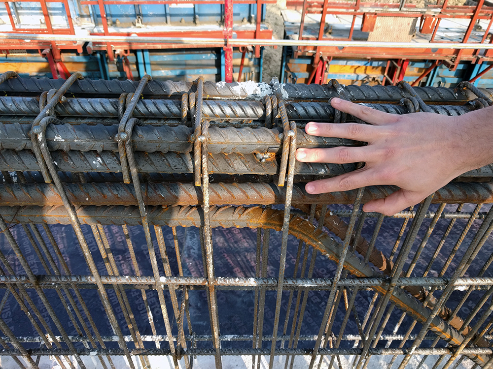 – Une zone de stationnement comprenant les 2 garages : 2 volumes en béton brut,